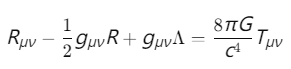 爱因斯坦场方程: 爱因斯坦场方程是广义相对论的核心数学表达,描述了质量和能量如何影响时空的几何结构。场方程的形式为: